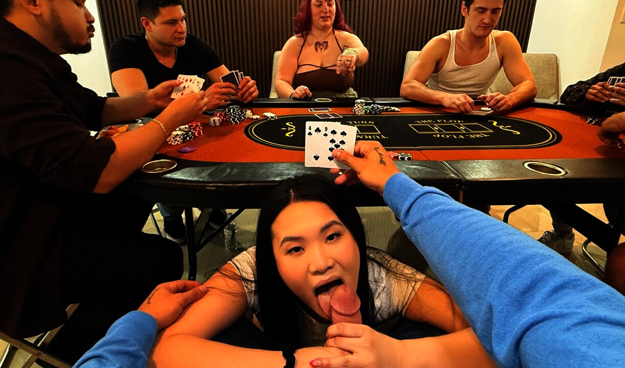 Ну, вот сказать что красивая азиатка подсела на техасский холдем было бы некрасиво, но тем не менее она частенько зависает в местном покерном клубе, куда ходит не столько следить за игрой, а трясти сиськами, показывать жопу и искать желающих разделить с ней радости быстрого секса. Ну и пусть не часто, но желающие пошалить находятся!