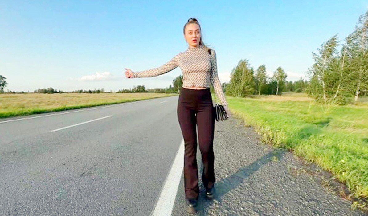 Если кто-то жалуется на жизнь и на то, что туристические маршруты стали очень дороги - делайте как блондинка Билоуфри. Она путешествует по окрестностям в леггинсах и ловит тачки, чтобы покататься, потрахаться и посмотреть на мир автостопом. Ну судите сами: начала она с проселочной дороги, потом вышла на трассу с двусторонним движением... теперь впереди магистраль!