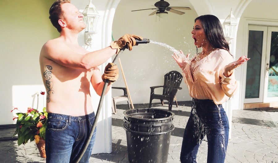 С мужем у грудастой брюнетки на почве секса взаимное недопонимание, поэтому в постели они пересекаются крайне редко. По этой простой причине бабенка неслабо западает на молодого садовника, поливающего двор. Докопавшись до хлопца, она получает сначала порцию холодной воды на сиськи, а затем горячий язык и член в письку, стоя раком.