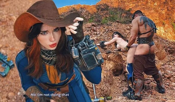 В постапокалиптическом мире есть все, кроме жалости и милосердия. Вот поэтому дикому рейнджеру Свити зачастую приходится весьма несладко. Вот и во время очередной нестандартной ситуации, за пару капель воды ей приходится отсасывать большой член, а после еще и трахаться в позиции раком - впрочем девушка как раз так и любит!