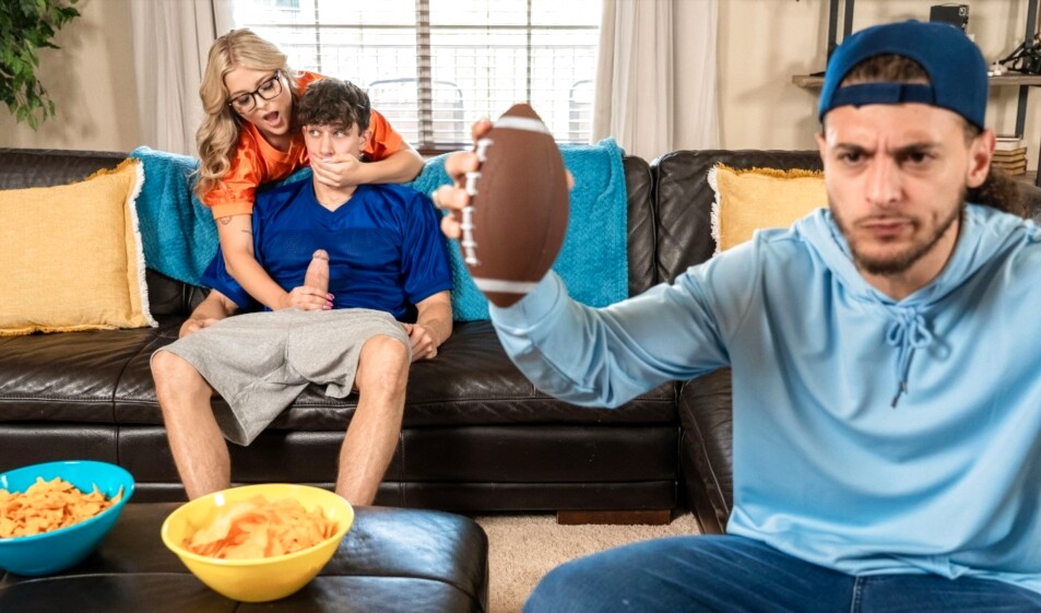 Длинный Логан пришел смотреть футбол, а занялся групповым домашним сексом со сводной сестрой приятеля