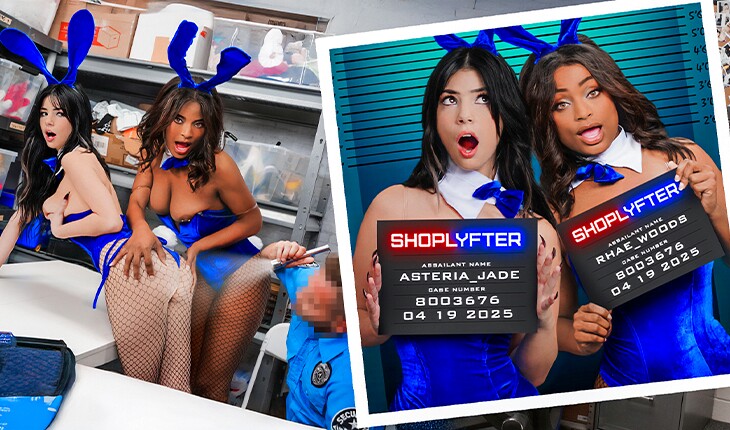 Совсем недавно две симпатичные подружки весьма талантливо и умело разыгрывали двух праздничных крольчих и потому не сумели сразу переключиться с выходных на будние дни. Именно поэтому они слегка попутали реальности и попались на глазах одному из охранников. Тот сделал все по уму и отпустил крольчих, когда те покаялись в содеянном и разрешили себя трахнуть.