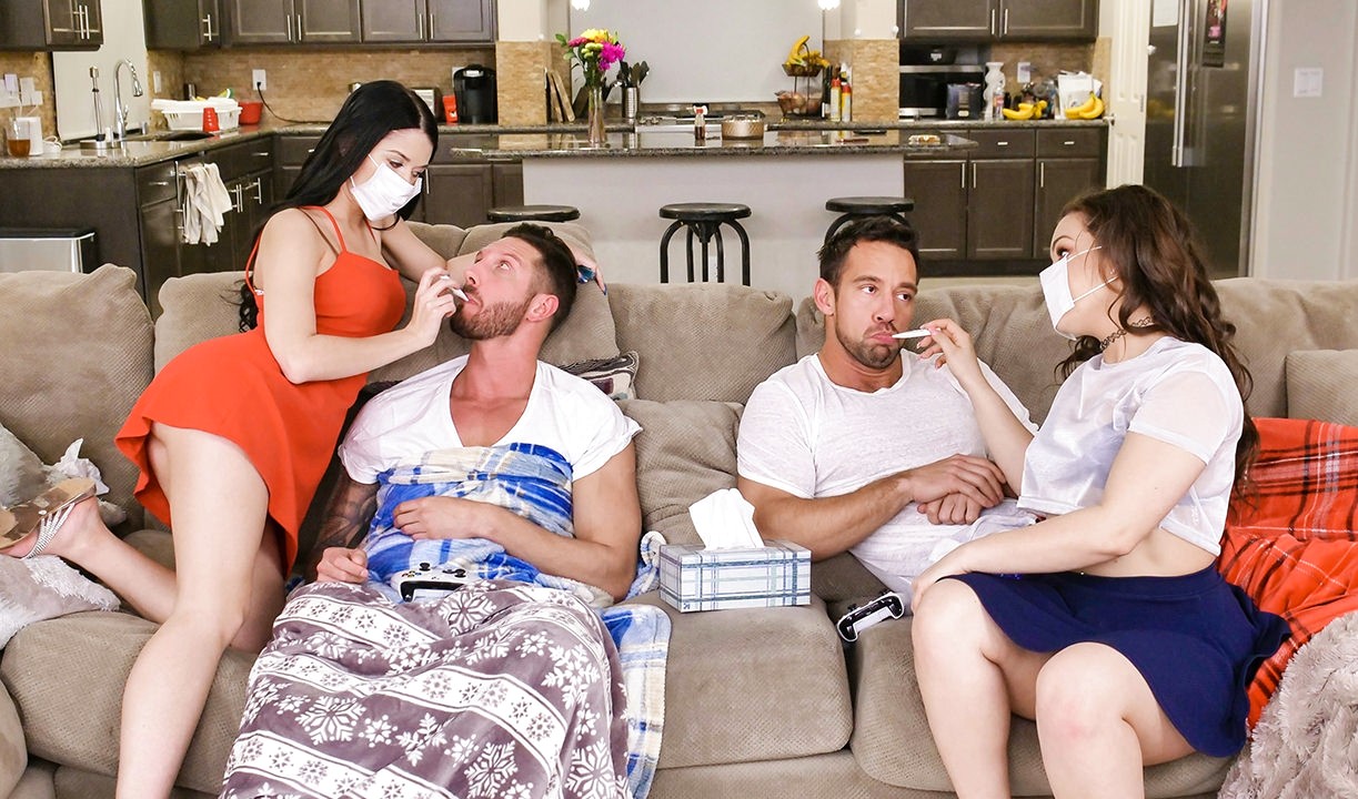 Эх и повезло этой паре мужиков, которые живут по соседству и каждый из них воспитывает падчерицу. Девки очень любят отчимов и когда те болеют, готовы сделать для них все - начиная от чая с малиновым вареньем, кончая во групповым порно, которое отлично помогает от простуды.