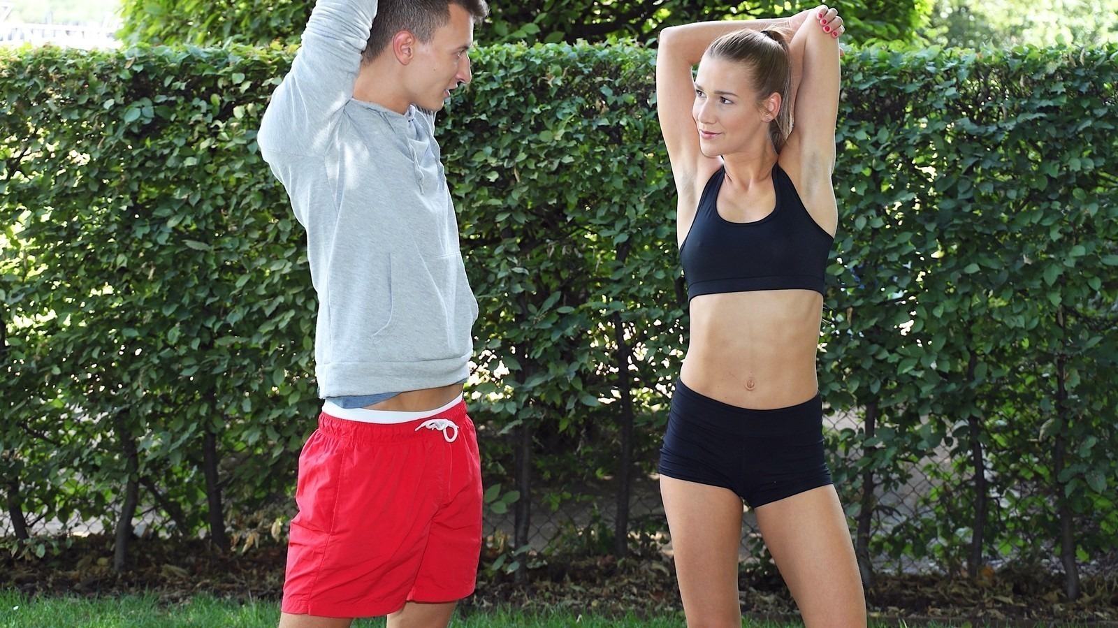 Уже целую неделю паренек бегает по утрам с цель познакомиться с симпатичной любительницей утренних пробежек. Но вот уже ледок недоверия сломлен, и молодая кокетка позволяет даже помочь ей в занятиях фитнесом. Впрочем это только начало, а вот когда она приглашает паренька домой, то после душа охотно позволяет гостю заняться сексом, благо и сама тащиться от подобной процедуры поболее чем от спорта.
