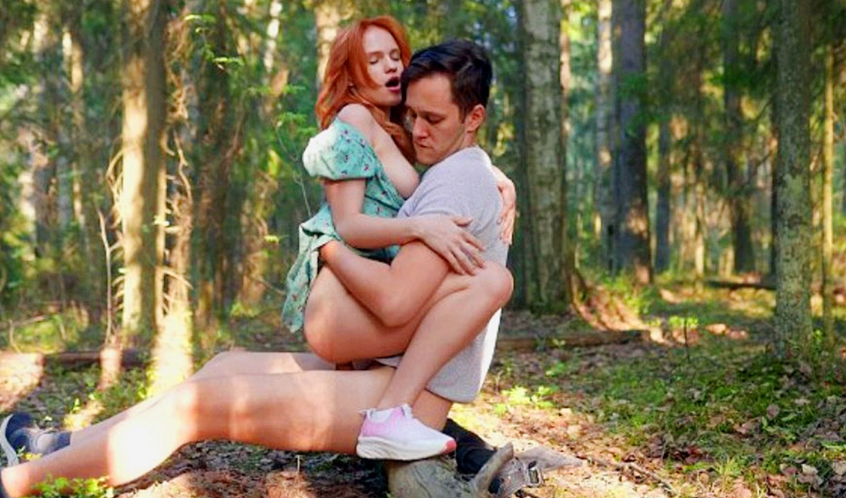 Наконец-то наступило лето и зимний лес оделся в великолепный зеленый наряд. Вот под эту-то марку паренек и пригласил на прогулку по лесу свою очаровательную рыжую подругу. Та с большим удовольствием пошла в кусты и уже совсем скоро повелась на интимное предложение молодца заняться сексом. В итоге секс на свежем воздухе в парочке позиций и отлично проведенное время.