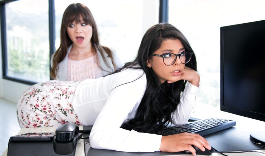 Вообще симпатичная телка на рабочем месте привыкла заниматься сексом с системным администратором, но тот сейчас в отпуске. Вместо него по компам шарахается симпатичная молодуха и голодная коллега решает предложить ей полизать сладкую письку. Та соглашается и в итоге девчонки с удовольствием занимаются лесбийский сношением прямо на рабочем месте. Ну а как еще скоротать день до вечера?!