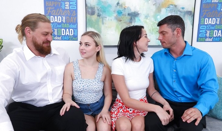 Две девушки-падчерицы, воспитываемые отчимами живут по соседству и дружат соответственно. Но сегодня у мужчин праздник и девушки хотят немного развлечь воспитателей, замутив с ними шикарный секс в групповом порно по типу свинга. Думается лучшего подарка те не смели и желать!