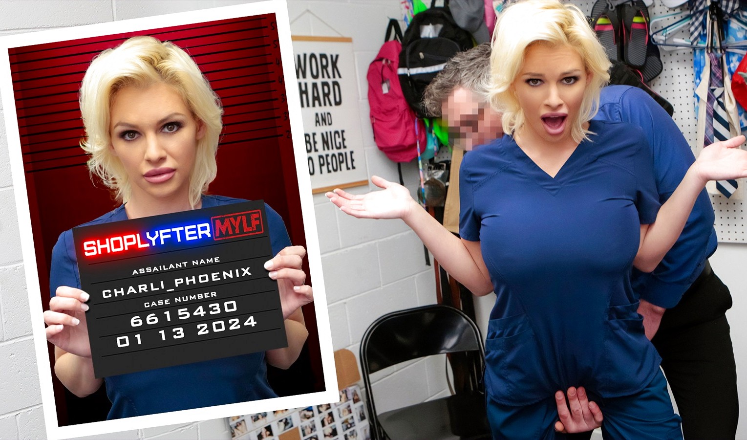 За красивыми девушками охранники магазинов следять гораздо меньше. Этим и пользуется симпатичная блондинка-медсестра, которая в перерывах между своей работой и отдыхом, шарахается по торговому центру и тырит все что плохо лежит. Но вот этот бравый охранник все-таки ловит медсестрицу на месте преступления и ведет ее в свою контору для дознания. По идее он может отпустить красавицу, но это вообще не интересно. А вот потискать дамочку и потрахать, это вполне достойная цена за свободу. Ну а под конце бабенка обещает приходит в гости для потрахушек пару раз в неделю.